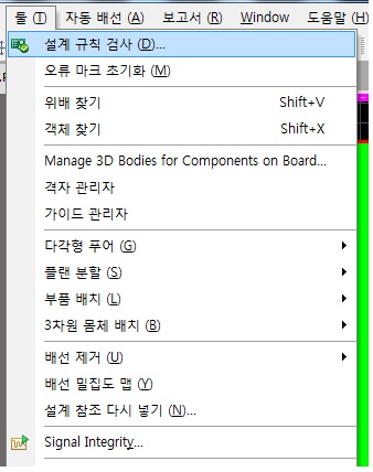 툴 -> 설계 규칙 검사 메뉴를 선택합니다.