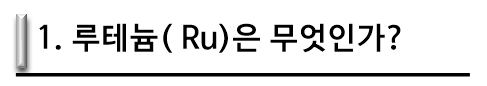 루테늄(ruthenium)은 화학 원소로 기호는 Ru, 원자 번호는 44입니다. 루테늄(ruthenium)은 백금 광석에서 함께 산출되며, 이름은 라틴어로 루스인의 땅을 뜻하는 루테니아에서 비롯되었습니다. 이름은 라틴어로 루스인의 땅을 뜻하는 루테니아(Ruthenia)에서 비롯되었습니다. 주기율표에서 백금족(platinum group)에 속하는 희귀한 전이금속 원소이며, 다른 백금족 원소들처럼 루테늄은 대부분의 화학 물질들과 반응하지 않습니다.