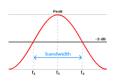 더 나아가서 설명드리면 저기 끝에 3dB라고 표시된 부분은 보통 3dB대역폭 즉, 반 전력 대역폭이라 합니다. 이는 최고 값 전력의 절반에 해당하는 대역폭 입니다.